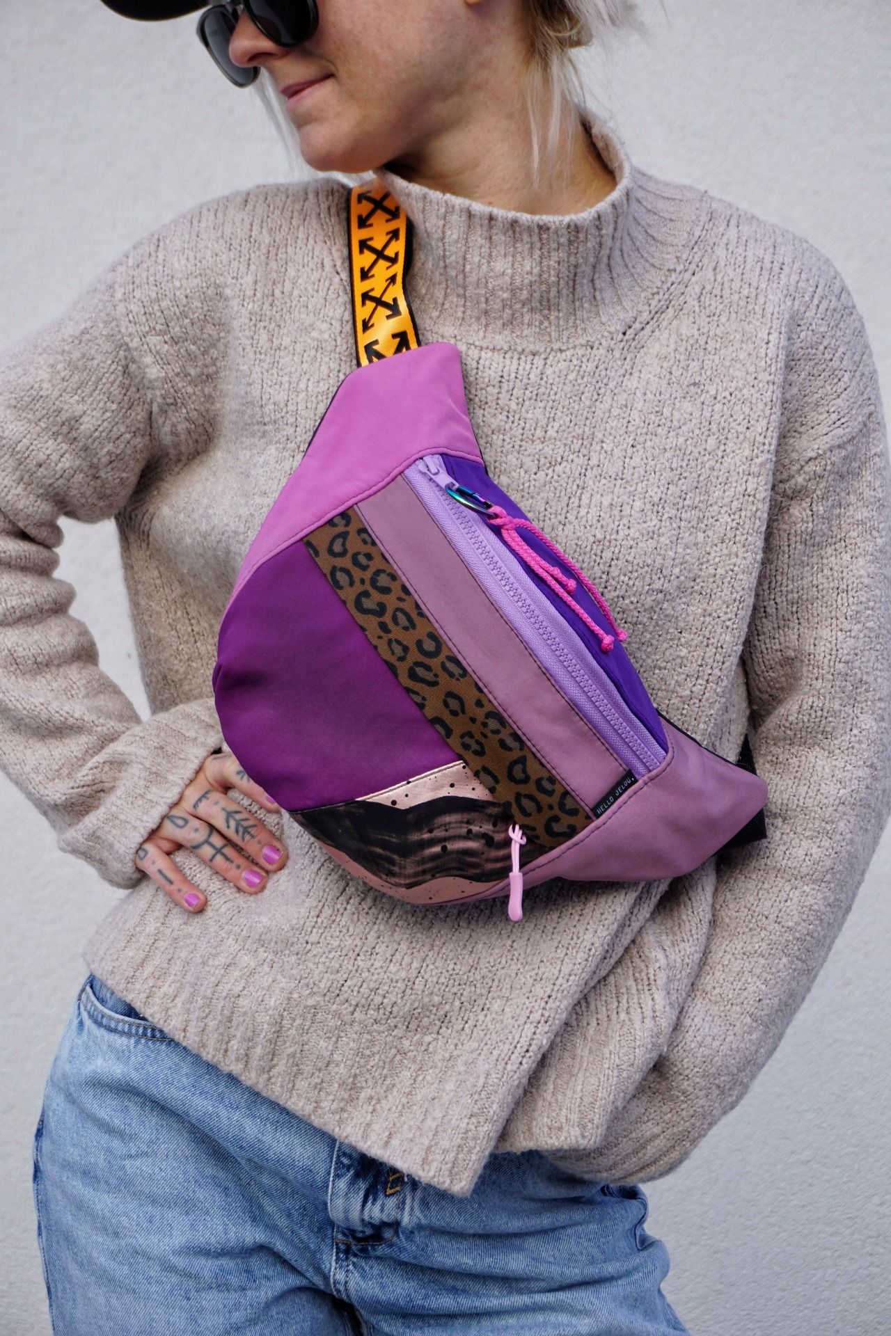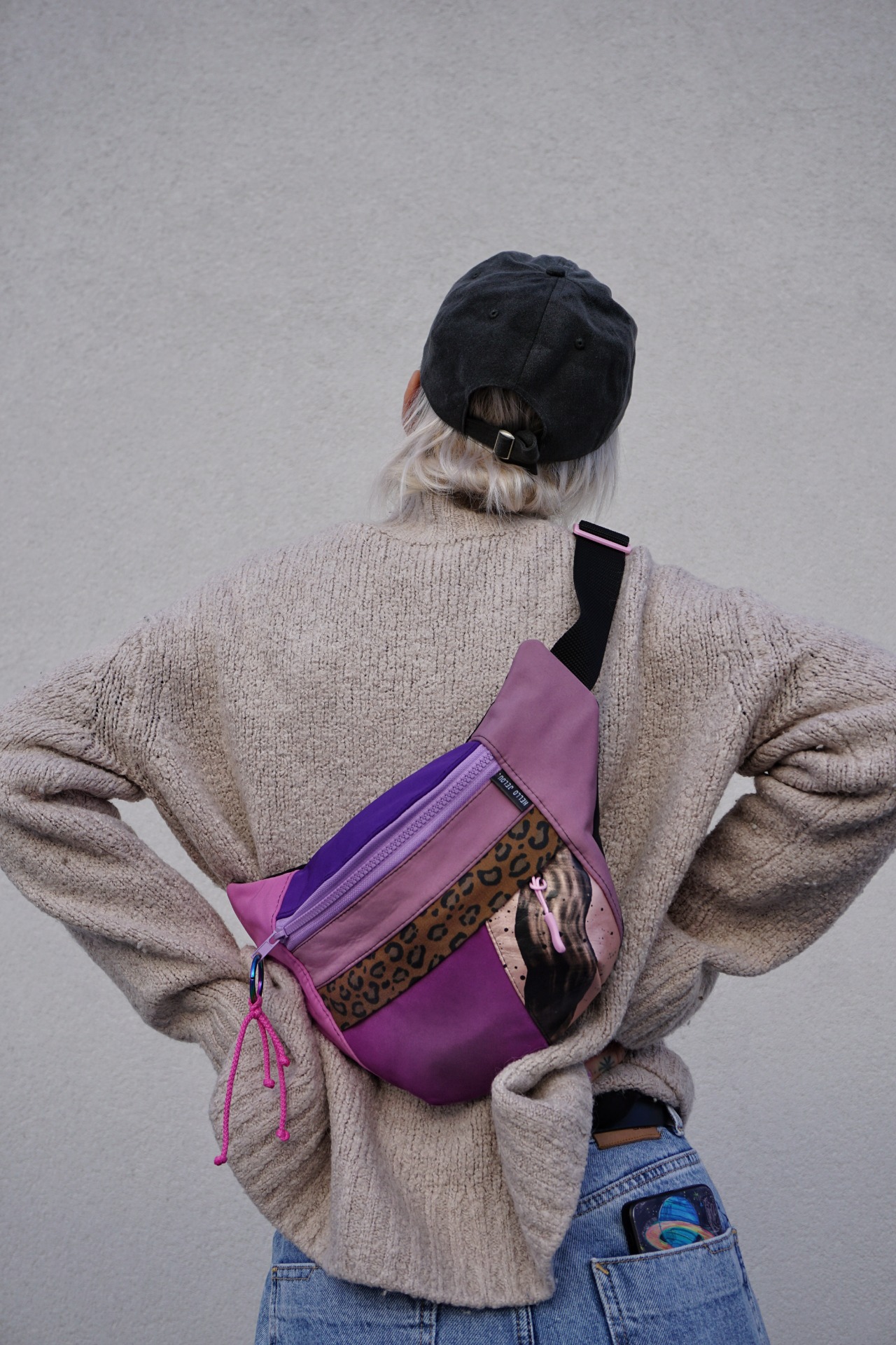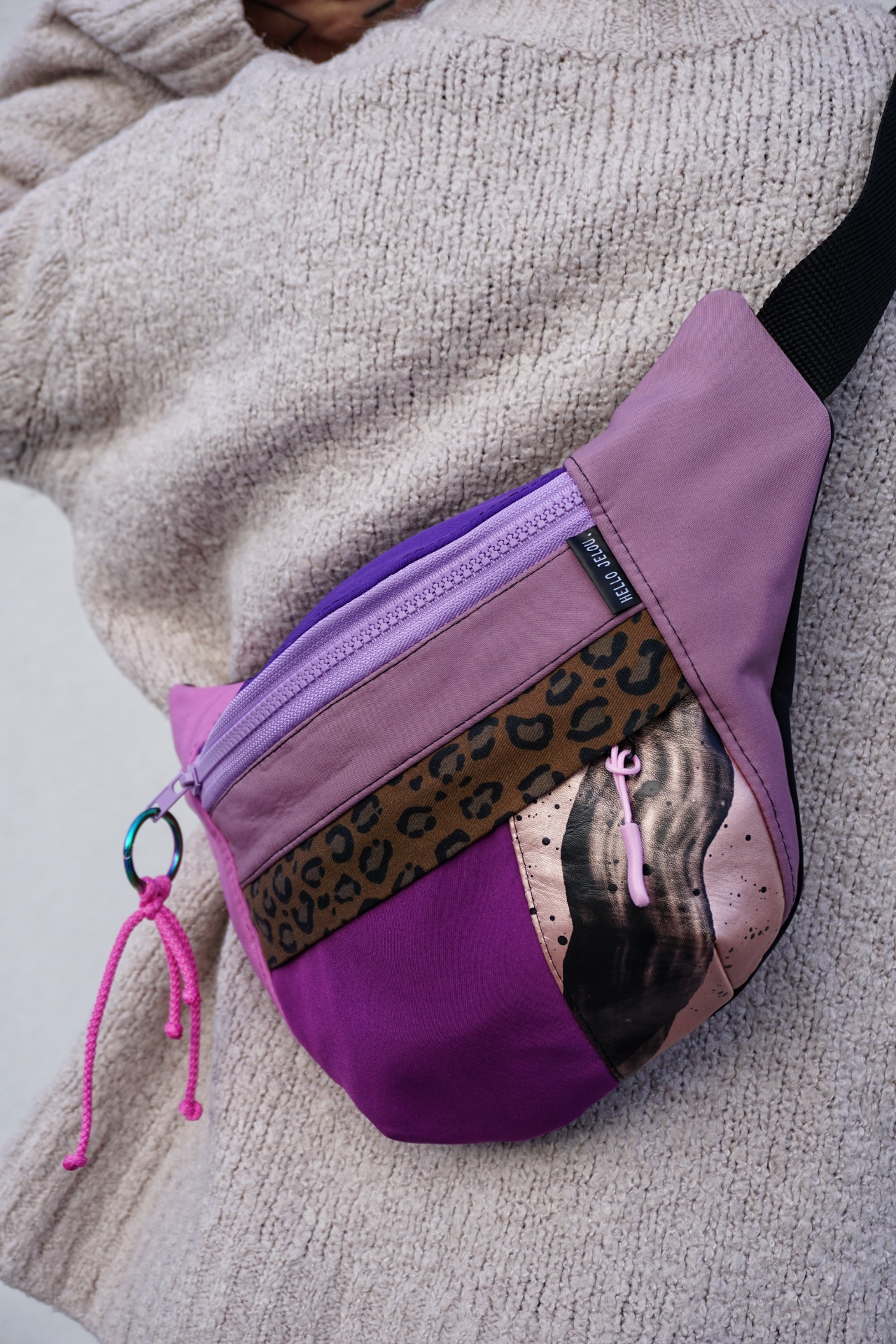 Ľadvinka je ušitá z materiálu softshell, ktorý je veľmi príjemný, prispôsobivý a z časti nepremokavý. Spodní dielik pod zipsom je z koženky - ručne maľovaný. Leopardí kryt na spodný zips, je bavlnený. Ladvinka má dve vrecká uzatvárateľné na zip. Popruh je zo syntetického pevného materiálu, má šírku 4 cm a jeho dĺžka je nastaviteľná. Spona je plastová. Zipsy tiež.