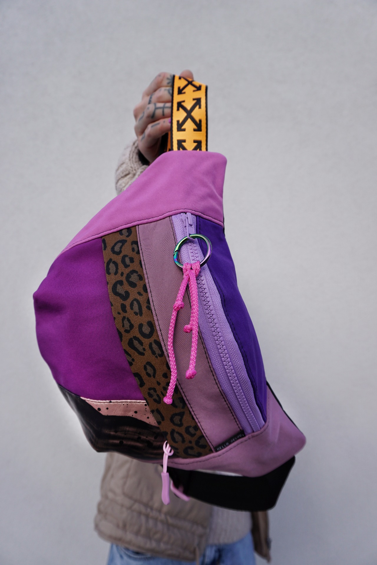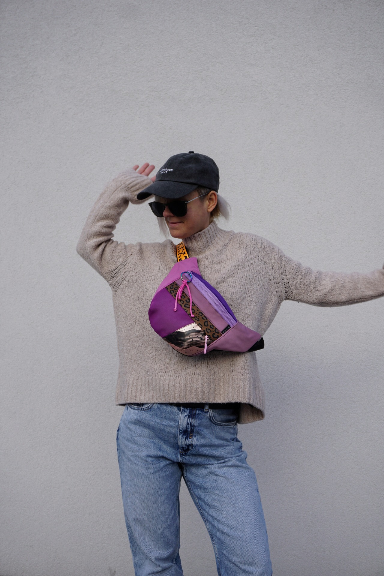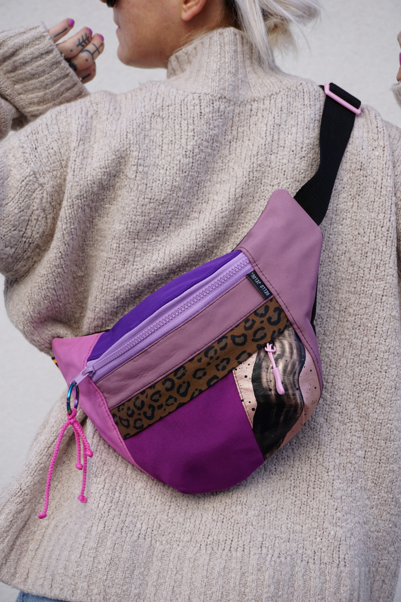 Ľadvinka je ušitá z materiálu softshell, ktorý je veľmi príjemný, prispôsobivý a z časti nepremokavý. Spodní dielik pod zipsom je z koženky - ručne maľovaný. Leopardí kryt na spodný zips, je bavlnený. Ladvinka má dve vrecká uzatvárateľné na zip. Popruh je zo syntetického pevného materiálu, má šírku 4 cm a jeho dĺžka je nastaviteľná. Spona je plastová. Zipsy tiež.